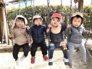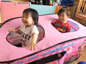 入園当初は、保育者のそばや、おんぶで過ごしている子もいました。