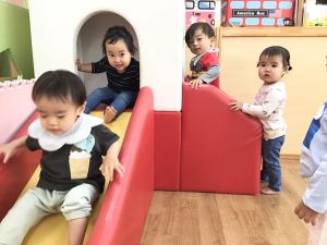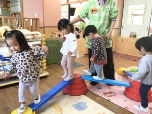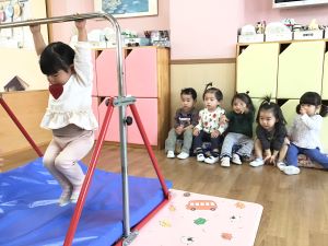 運動能力も発達し、鉄棒や平均台のようなものにも挑戦!